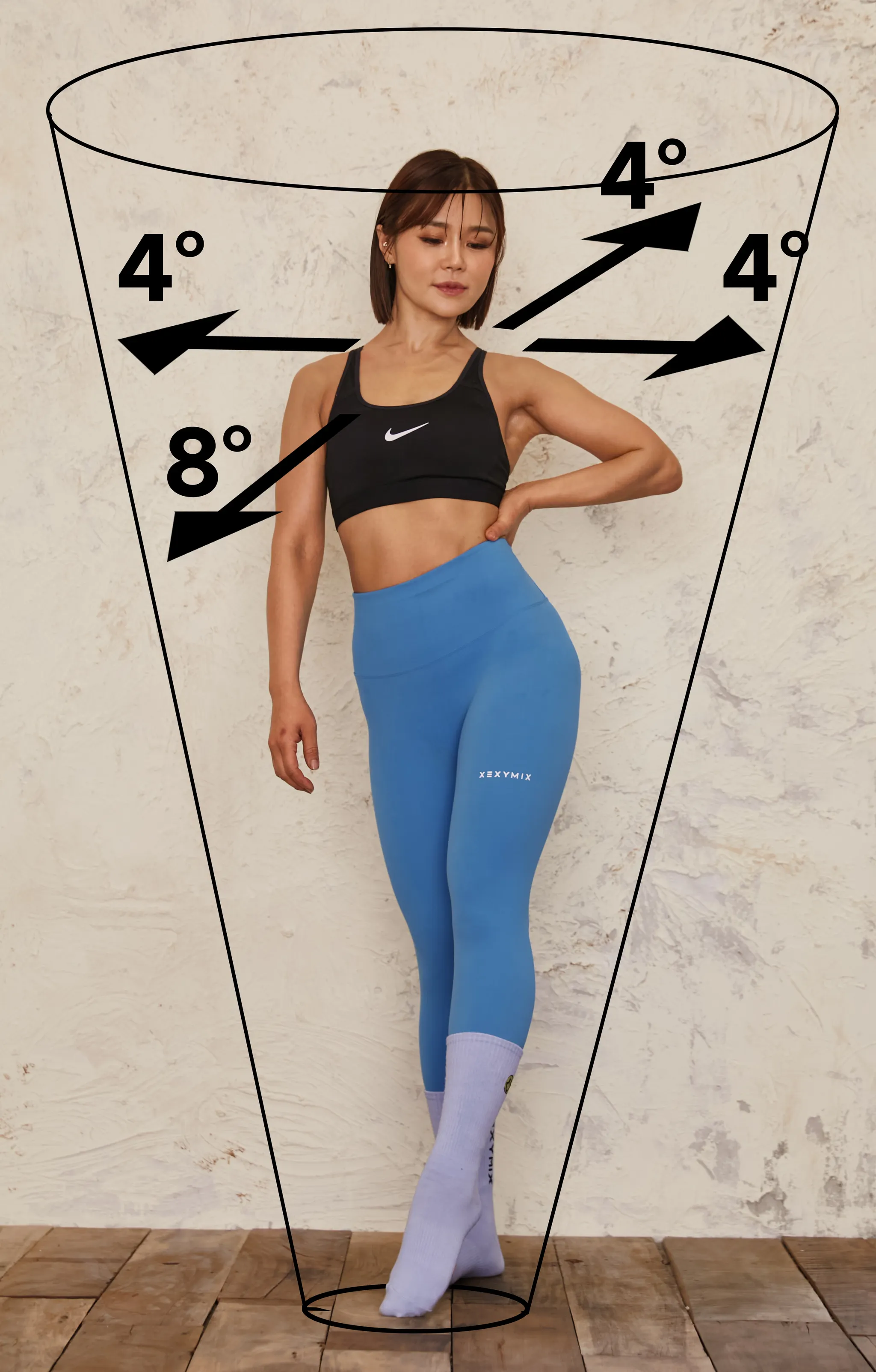 인간의 균형각도는 전방으로 8도, 옆, 뒤로는 4도입니다.