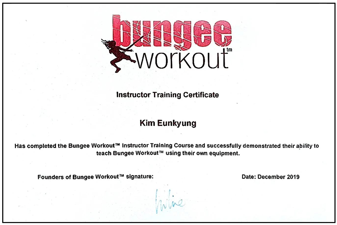 영국 Wired Aerial Theatre Bungeeworkout Instructor (2019) 번지피트니스 창시자 Wendy 제자 : 정통 번지피트니스 강사